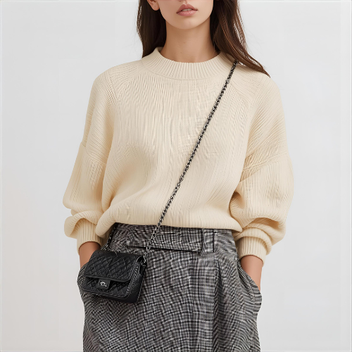 キルティングのふっくらした**「甘さ・可愛らしさ」と、チェーンのメタリックな「辛さ・かっこよさ」**を同時に持つため、シンプルな服装でも一気に奥行きのあるスタイルが完成します。