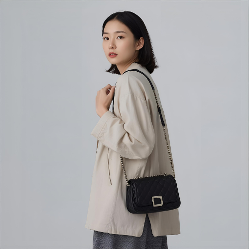 マットなレザー素材や黒・ネイビーのベーシックカラーを選び、金具はゴールドで統一すると、品格が強調され、年齢を問わず長く愛用できる「大人のバッグ」として活躍してくれます。