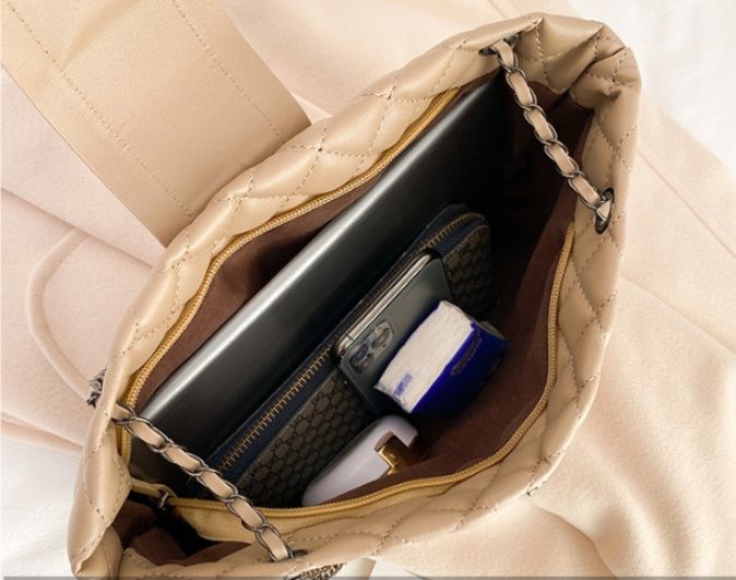 立体的な菱形ステッチが美しいキルティングバッグです。