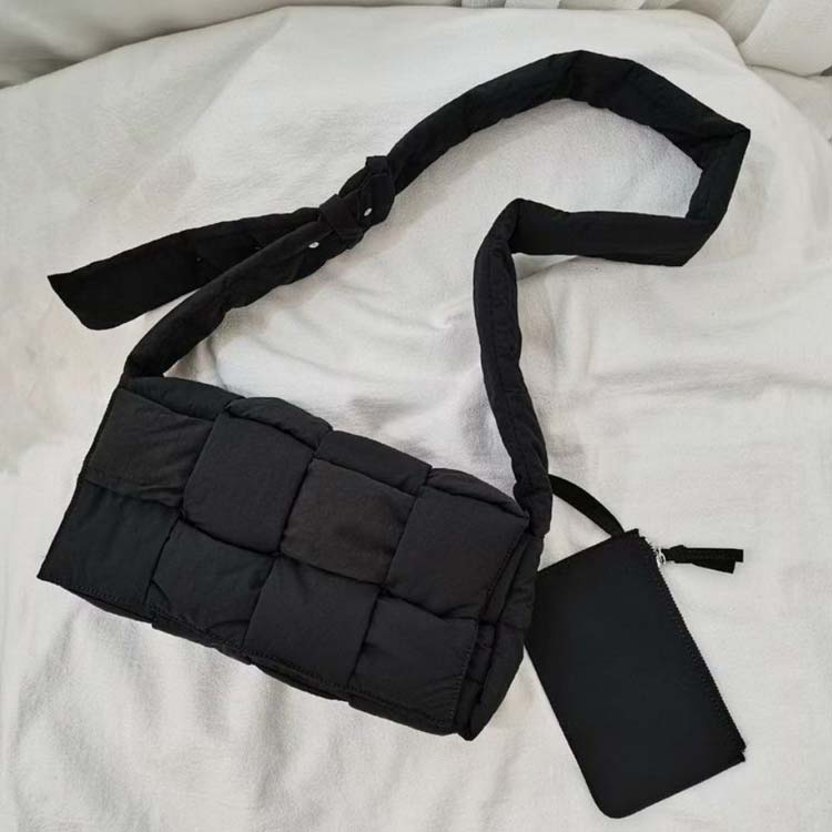 編み込み風の立体的なキルトデザインが印象的なミニショルダーバッグです。