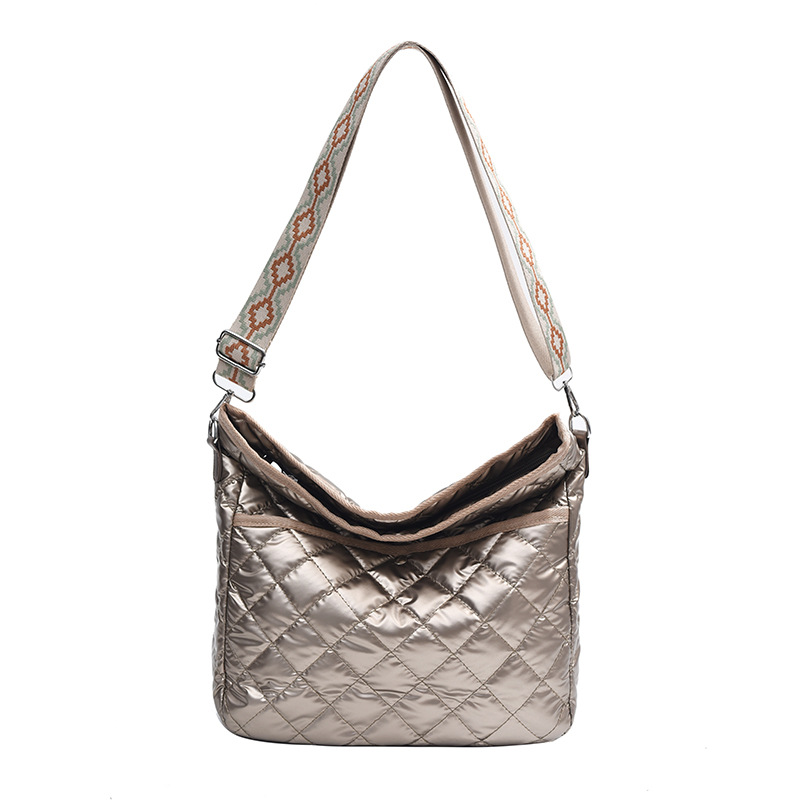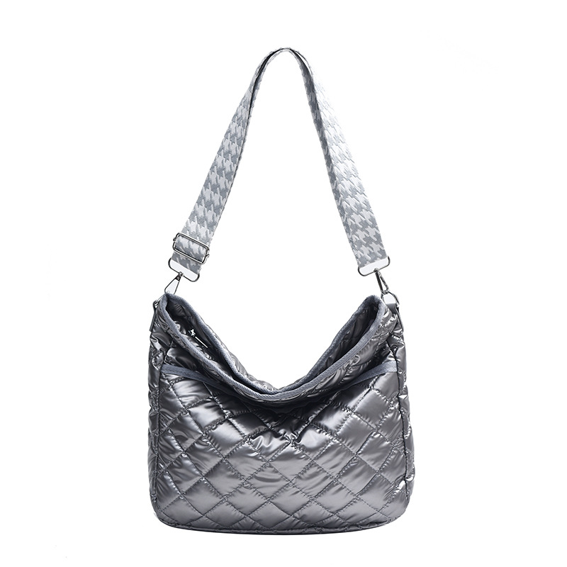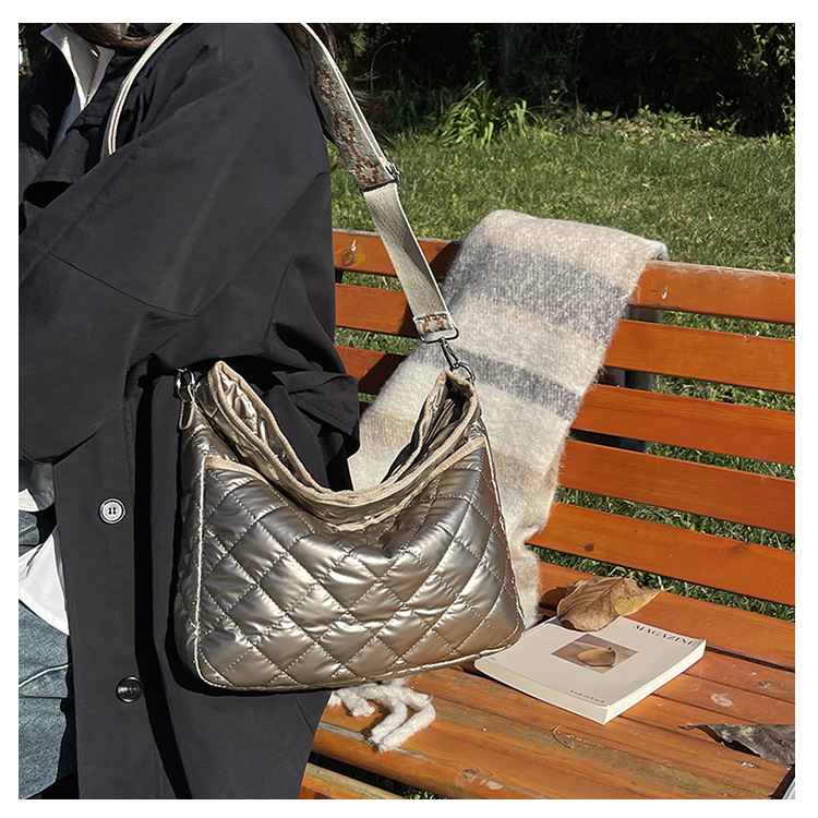 光沢感のあるシルバーカラーが目を引く、上品な雰囲気のキルティングバッグです。トレンド感のある韓国ファッションテイストを取り入れたデザインで、カジュアルな装いにはもちろん、きれいめコーデのアクセントとしても活躍します。程よい存在感がありながら主張しすぎず、いつものスタイルに洗練された印象をプラス。ショルダーバッグとして使いやすい設計で、見た目以上の収納力を備えているのも嬉しいポイントです。普段のお出かけやデイリー使いに取り入れやすく、コーディネートの幅を広げてくれる実用性とデザイン性を兼ね備えた一品です。