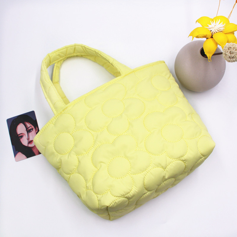 立体的な花柄デザインが可愛らしいキルティングバッグです。 ふっくらとした丸みのある花模様が全面に施され、華やかな印象を与えます。 軽量で柔らかな素材を使用したトートバッグは、日常使いに最適なサイズ感です。 持ち手部分には配色デザインを採用し、おしゃれなアクセントになっています。 普段のお出かけやランチバッグとしても活躍する便利なアイテムです。