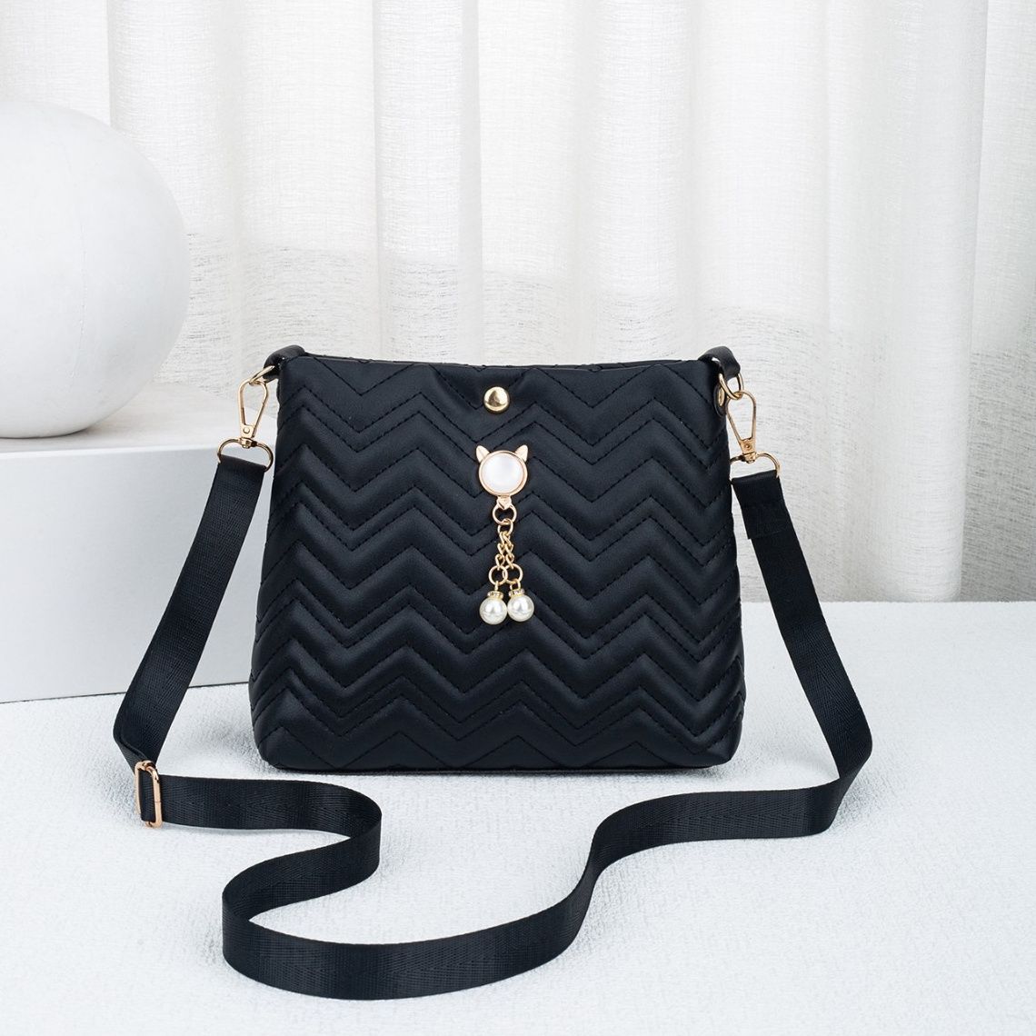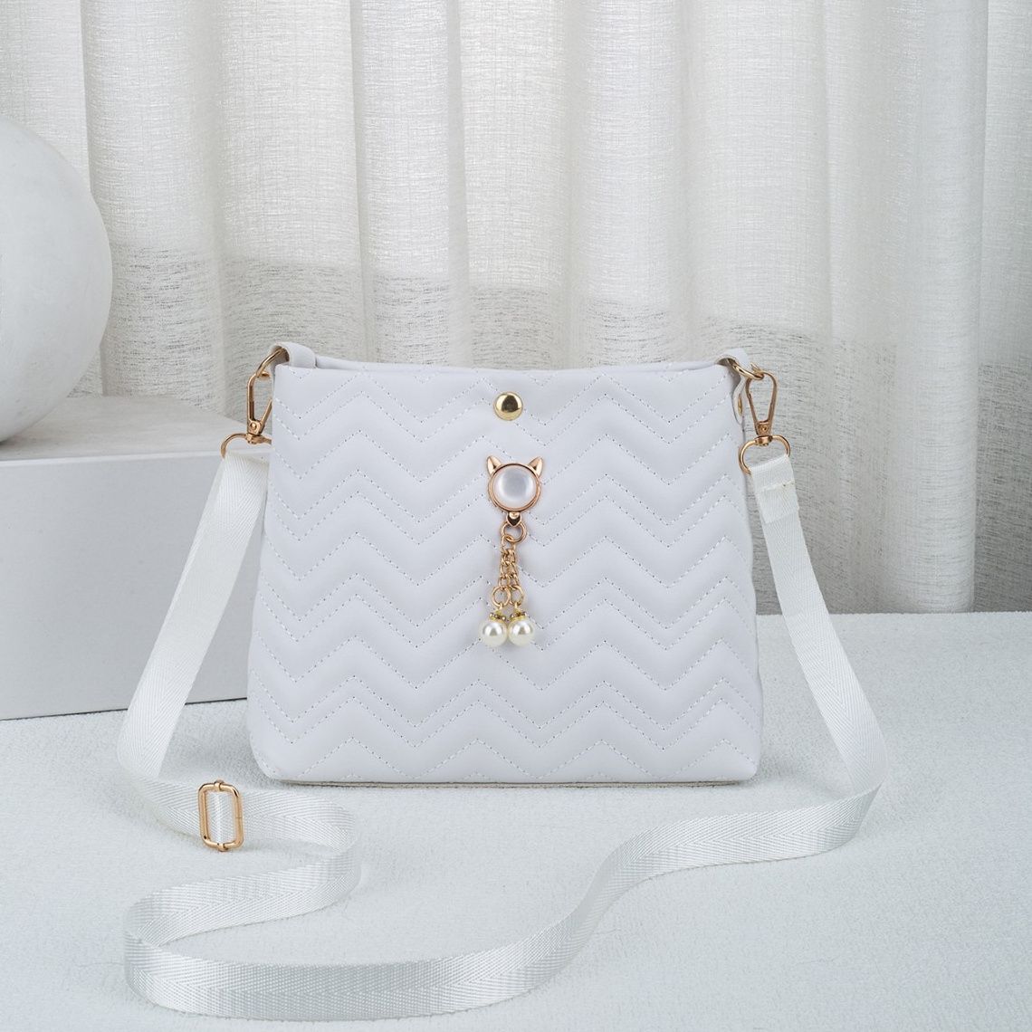 中央にはパールチャームがあしらわれ、女性らしさをプラス。