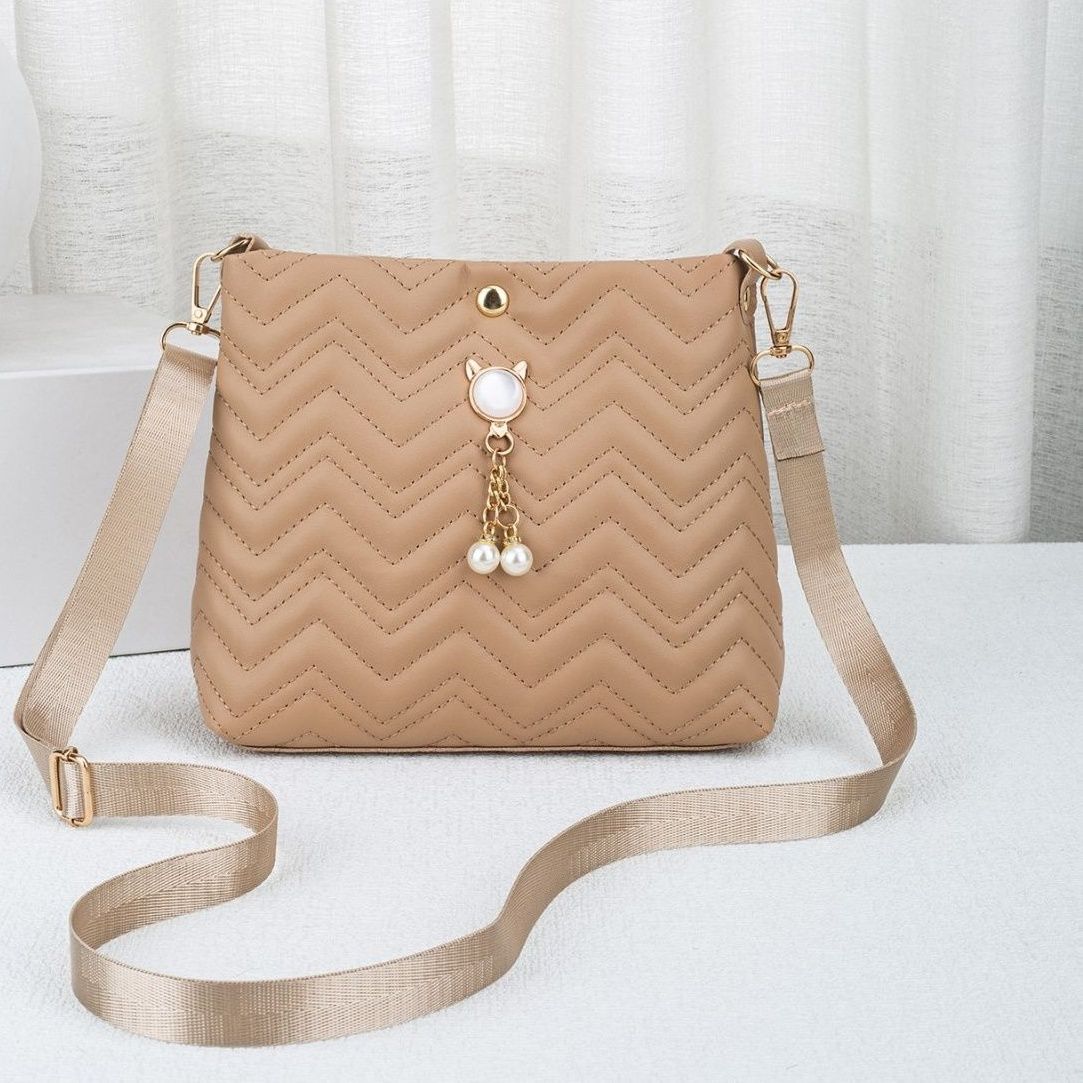 ショルダーバッグとして斜め掛けも肩掛けも可能な調節可能なストラップ付きです。