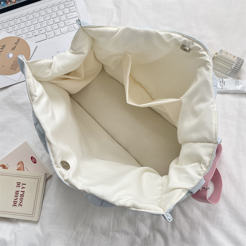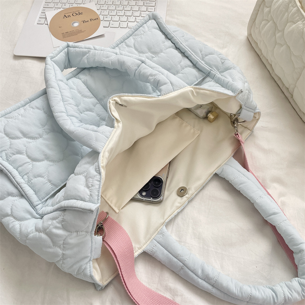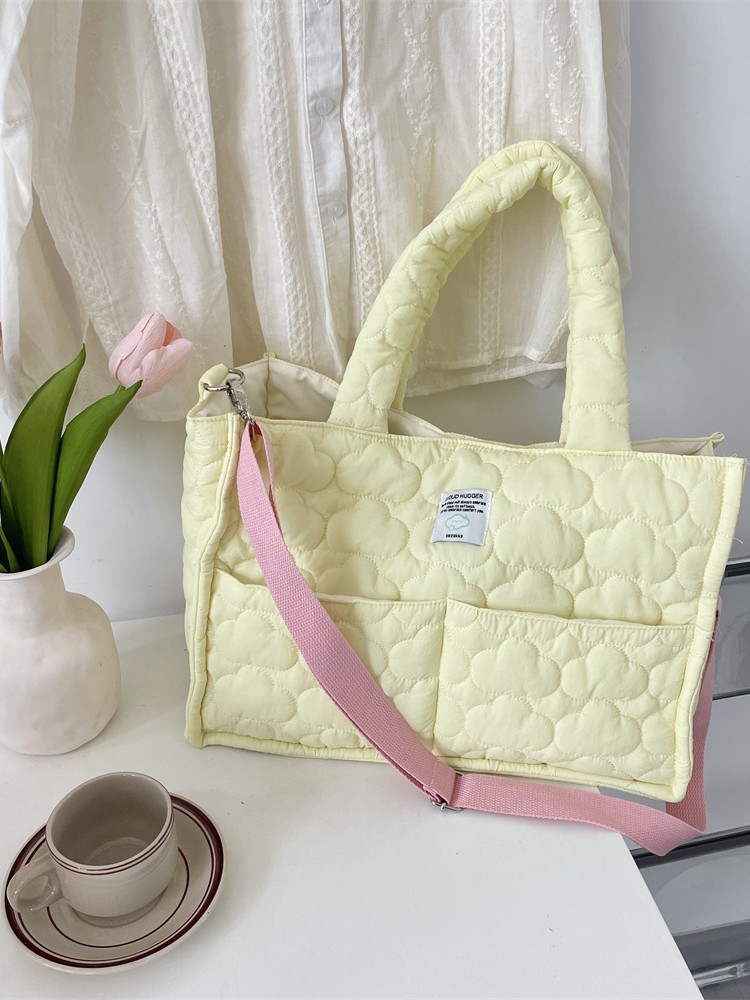 ふっくらとしたキルティングバッグに、クッション性のある太めの取っ手が特徴的なショルダーバッグです。