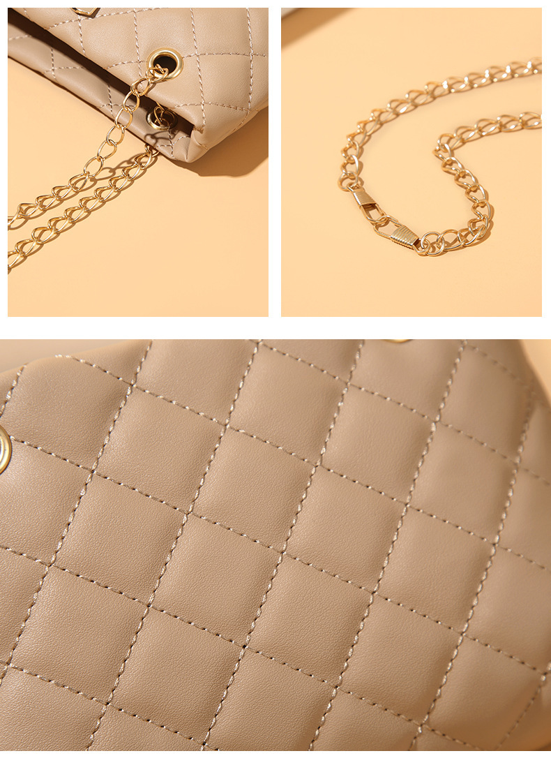 高級感のある金属チェーンと、柔らかな合成皮革の組み合わせが大人の上品さを演出します。