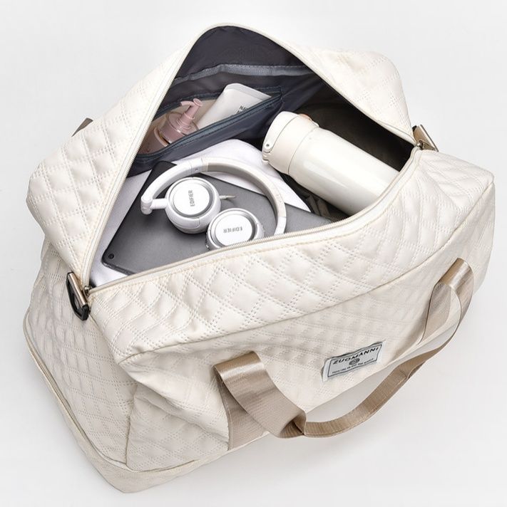 旅行や出張に便利な大容量のキルティングバッグです。