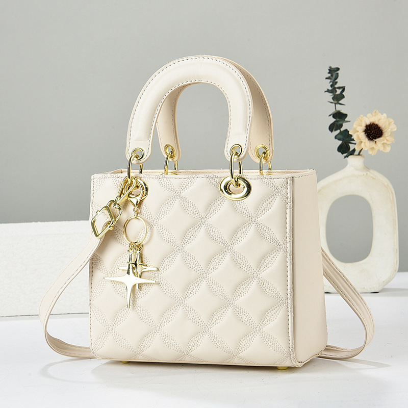 ゴールド金具とチャーム付きでキルティングバッグならではの高級感を演出し、カジュアルからフォーマルまで幅広いシーンで活躍します。