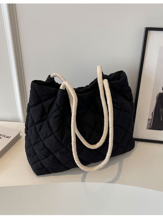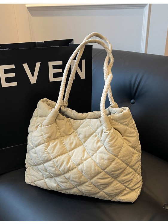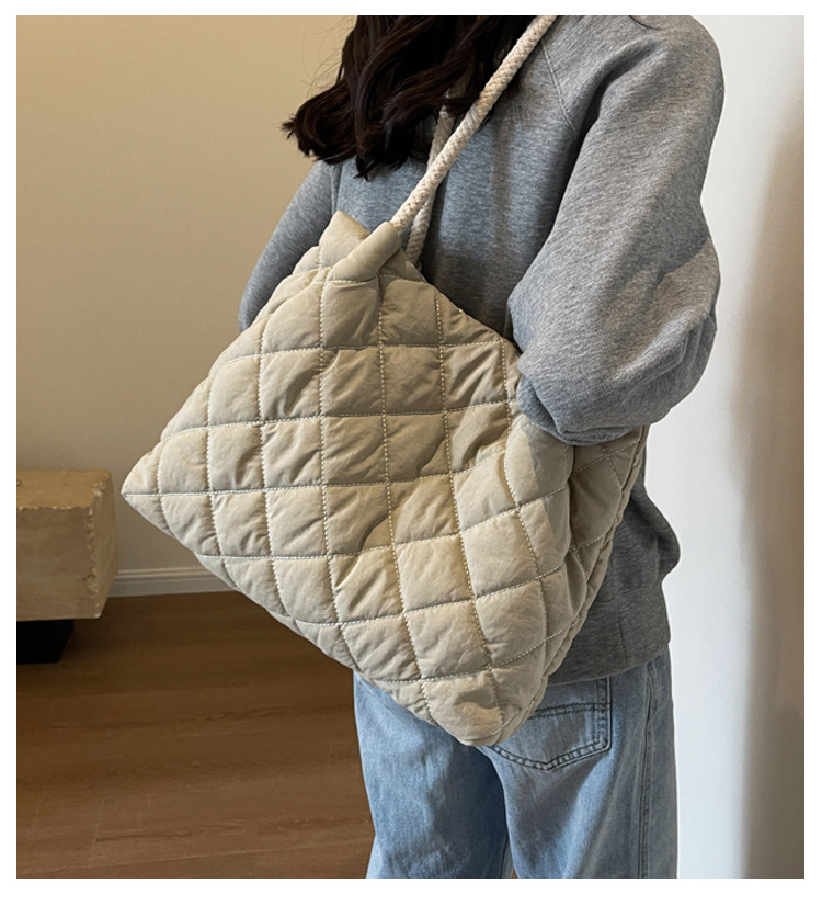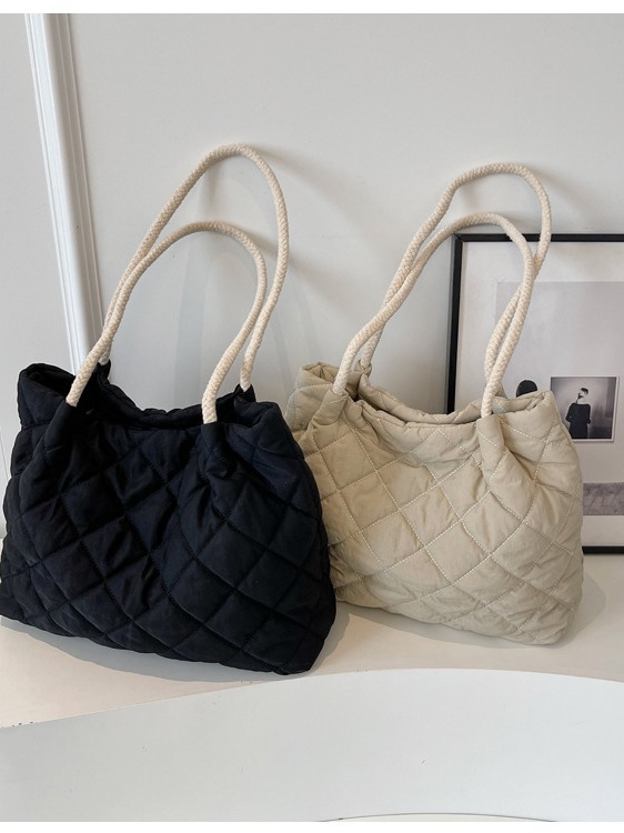立体的なダイヤ柄のステッチが美しいキルティングバッグです。