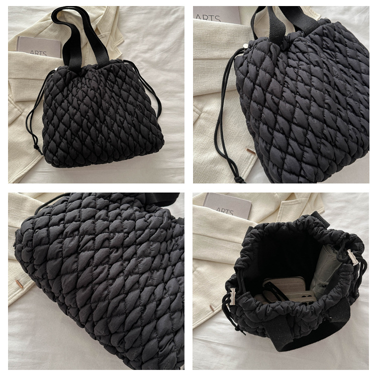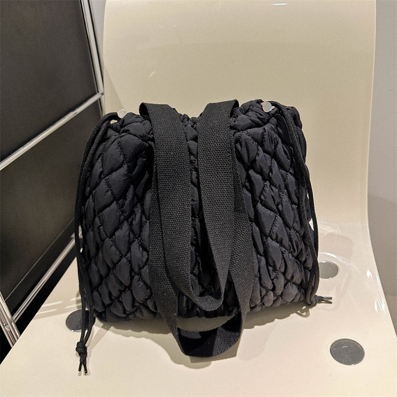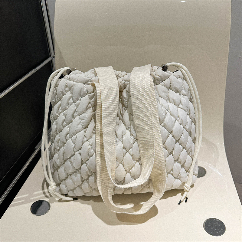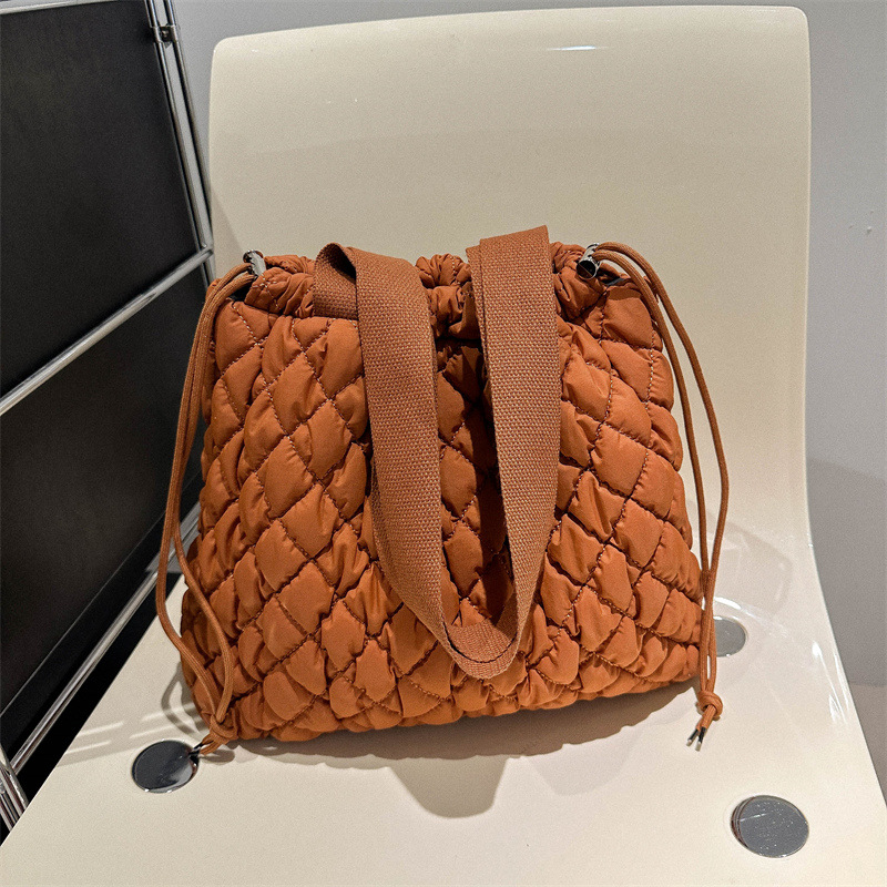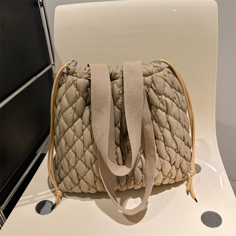 キルティングバッグならではのふんわりとした質感が、コーディネートに優しいアクセントを添えます。
