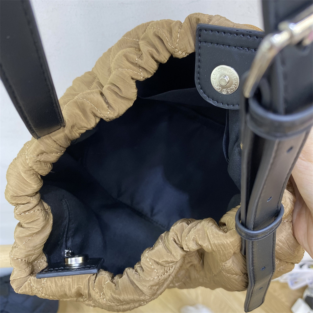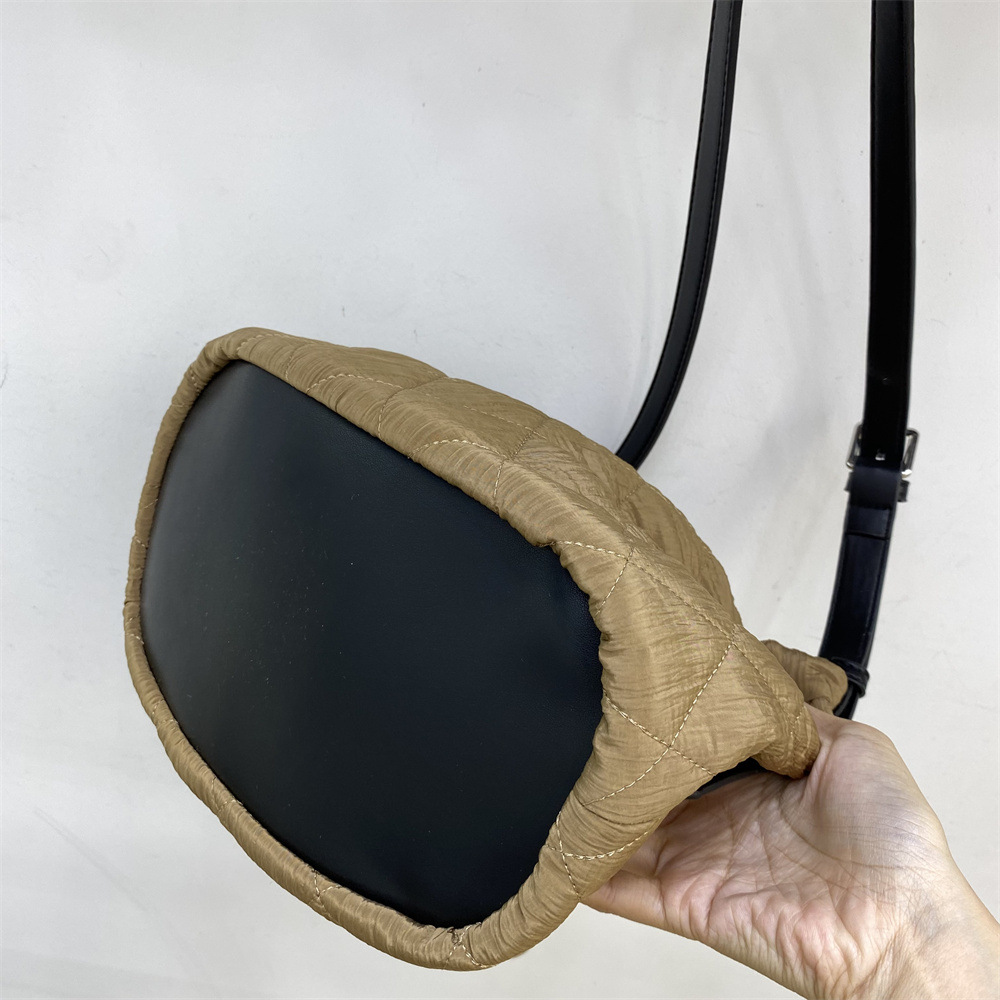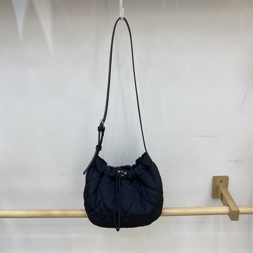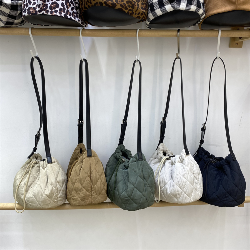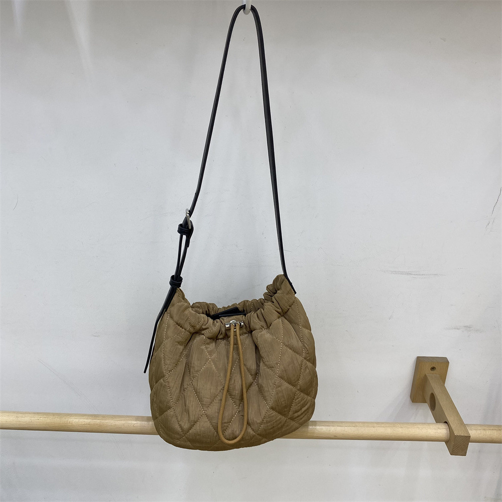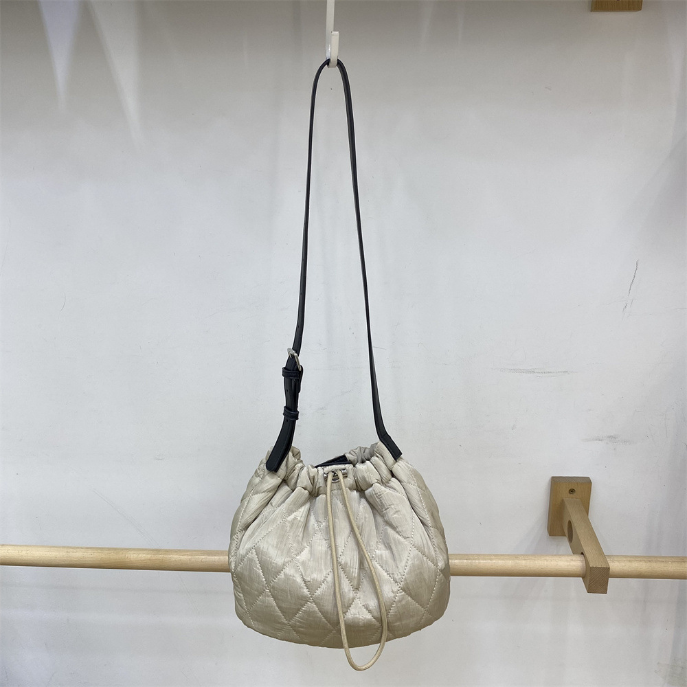 柔らかなキルティング生地が優しい印象の巾着型ショルダーバッグです。